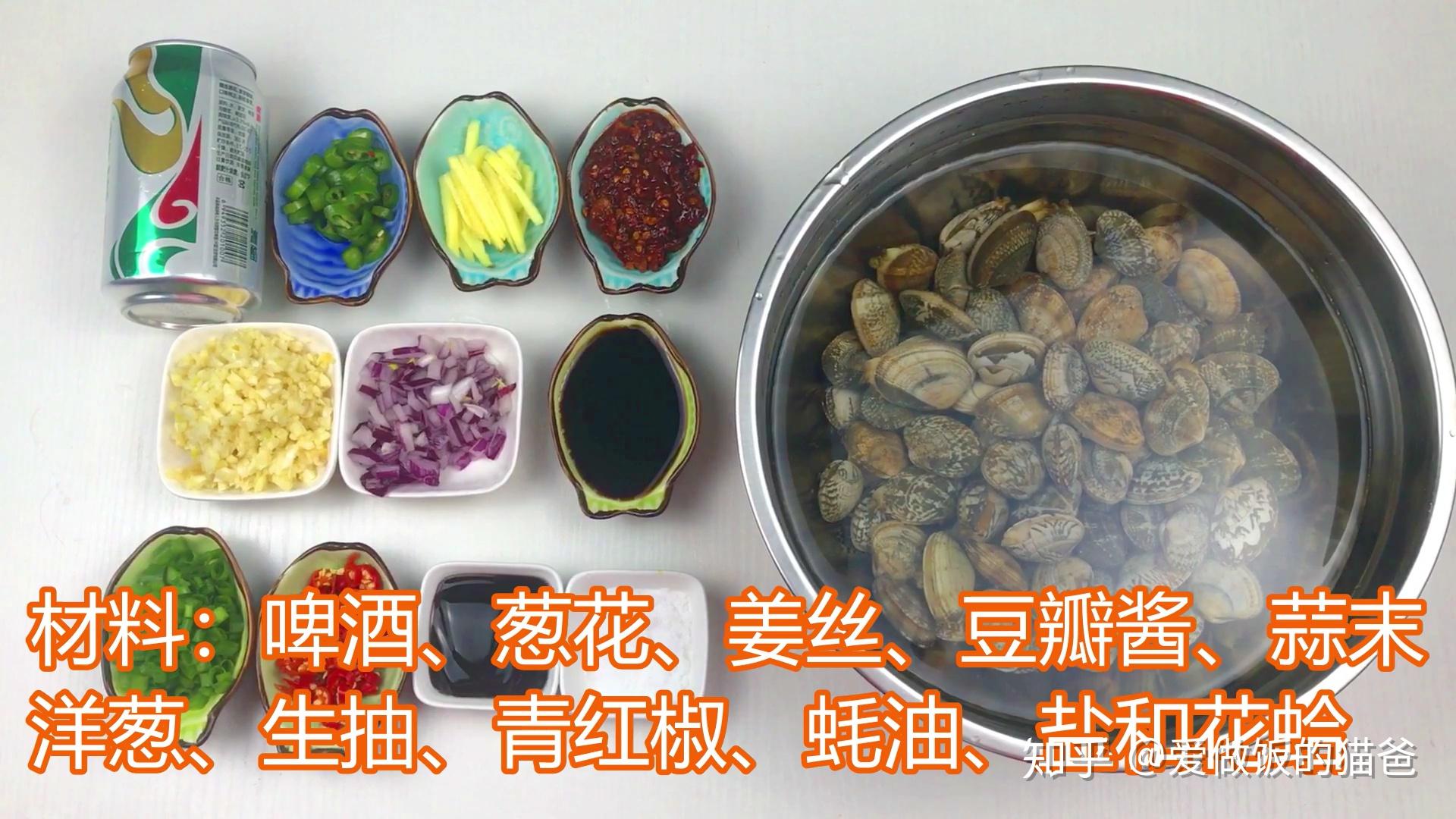 啤酒、葱花、姜丝、郫县豆瓣酱、蒜末、洋葱、生抽、青椒、小米椒、蚝油、食盐和花蛤