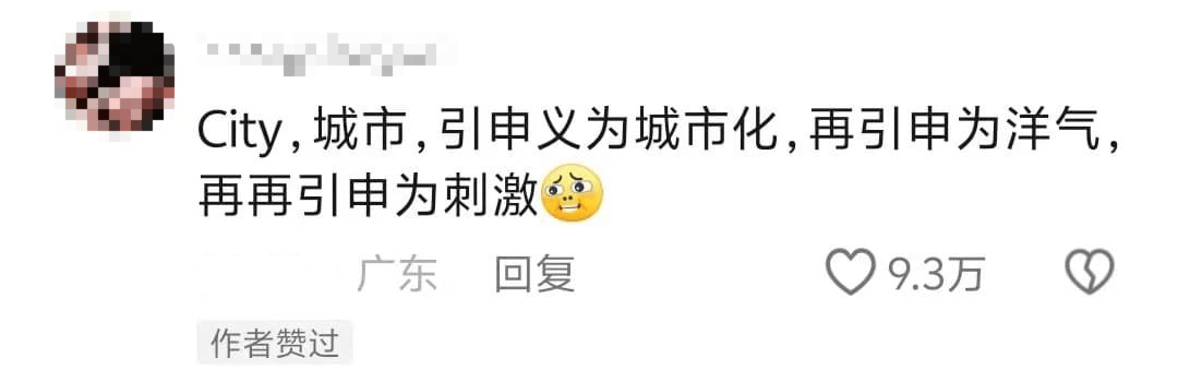 “City,城市,引申为城市化,再引申为洋气,再再引申为刺激。”