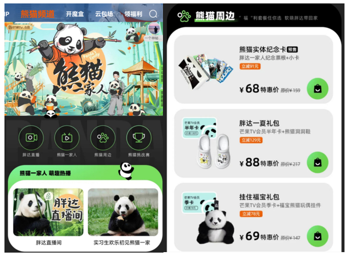 在商业模式上,“小Fun综”标志着芒果TV在会员付费领域继续深探。以打造高品质的会员专属内容为基础,加上IP衍生产品打通产业后链路,芒果TV不仅增强了用户的黏性和忠诚度,还进一步拓宽了付费会员的盈利空间,实现内容与商业的双赢。近期由芒果TV联合中国大熊猫保护研究中心共同推出的《熊猫一家人》,选题即来源于现在年轻人“云吸猫”的风潮。用户从大熊猫身上获得疗愈感,也期待着更多关于熊猫的科普与趣味内容。据悉,该节目的互动指数、表现指数以及观众的实际反馈,持续对节目后续创制与运营产生影响。例如,在发现用户对熊猫的饲养等过程十分感兴趣后,芒果TV上线了熊猫频道,并增加了每天两场福宝等大熊猫的慢直播,观众们还可以通过“找猫游戏”解锁更多内容。上线第一天,即解锁了福宝的第一视角直拍内容发布,增加了芒果用户的归属感和参与感,实现了内容与观众之间的深度链接与共鸣。在商业变现上,小Fun综也推出了熊猫周边+会员卡的衍生商品,即满足了观众们“吸猫”之后想要拥有节目同款商品的心愿,将toC的变现方式多元化。