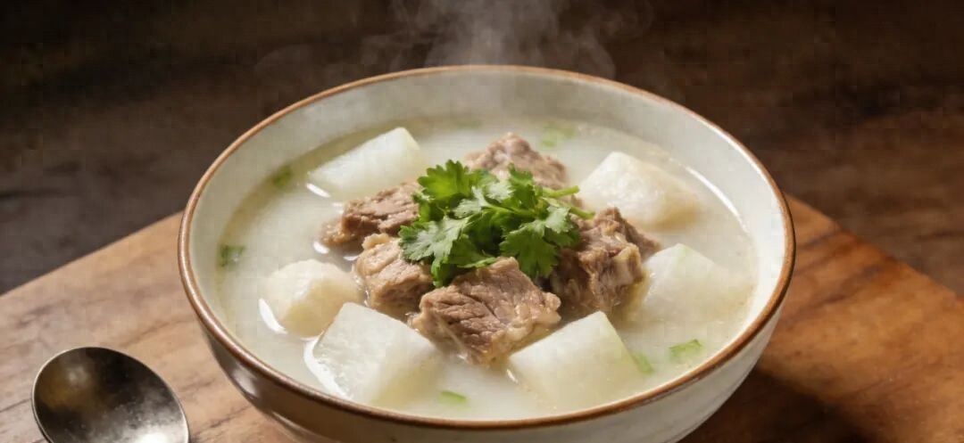 说到吃的,羊肉萝卜汤还真不是随便乱炖的。挑肉就得上点心,羊腿或肋排最合适,颜色要淡红,不能发暗,拿手一按得立刻回弹,这样的肉才嫩。切块后先泡水,一两个小时,把血水逼出来,接着冷水下锅焯一遍。锅里放点油,姜片葱段爆香,再把羊肉倒进去翻炒,等表面微微焦黄,立马冲进滚烫的开水——这一步不能用凉水,不然肉就老了。小火慢炖一个小时,等肉香彻底散出来,再扔进切好的白萝卜。那种表皮坑洼、根部粗实的白萝卜最好,水分足,微甜,炖化了之后汤更润。羊肉温补,萝卜清火,一热一凉,身体不受罪。民间说“萝卜来福”,图个谐音吉利,其实说到底,是希望冷天里一家人围一锅热汤,寒气散了,心也暖了。