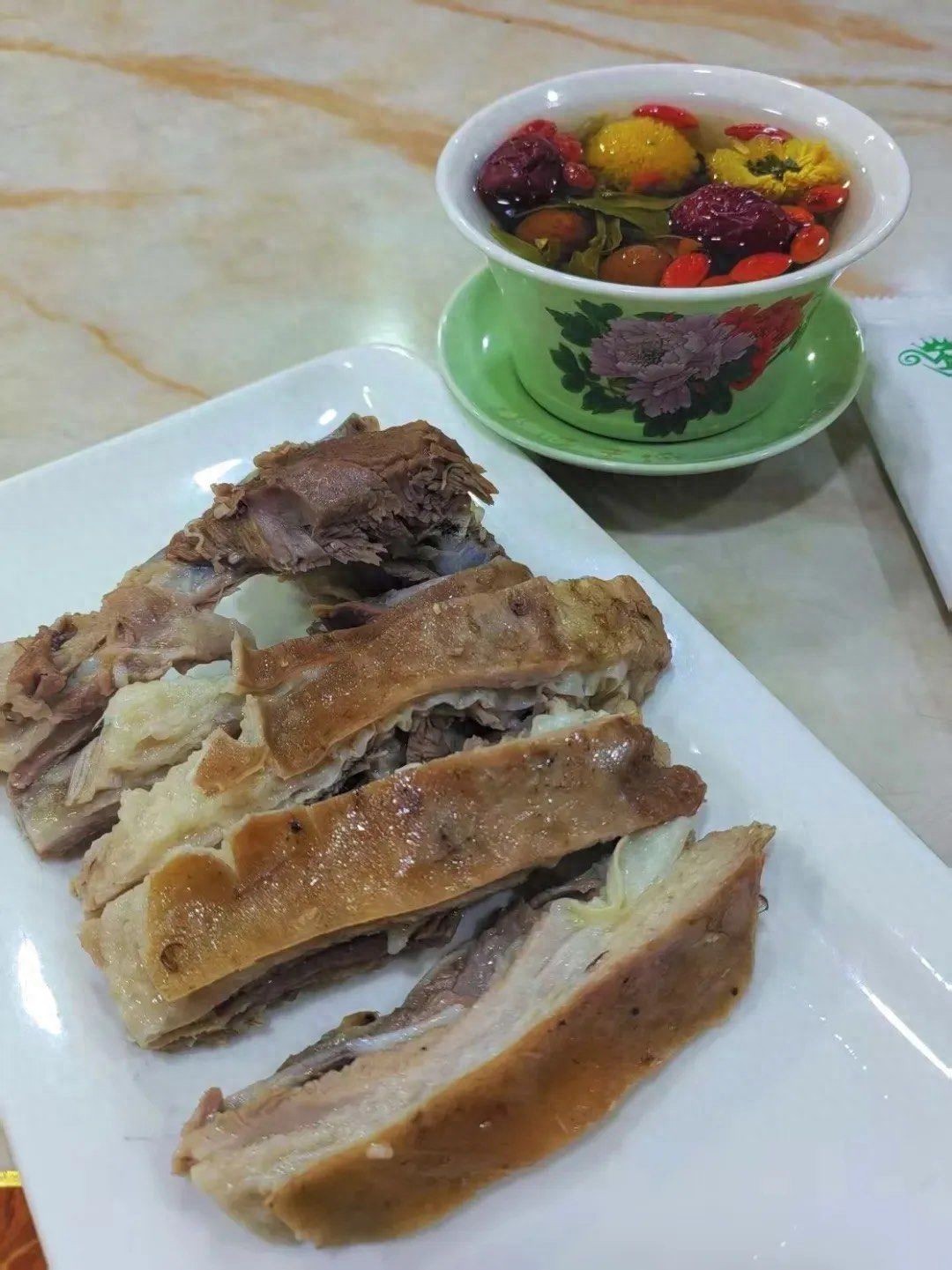 祁师手抓(西湖老街总店) 是老兰州心中的“手抓天花板”。藏在七里河的老街深处,每天现宰的东乡羊带着新鲜气息下锅,只用清水加花椒、姜片慢炖一个半小时,遵循“无八角、汤清亮”的老规矩,最大程度保留羊肉本味。招牌羊肋条肥瘦比例精准,1.2-1.5厘米的肥层油润不腻,轻轻一抿就脱骨,肉香混着淡淡的奶香在舌尖化开。羊脖子则带着筋头,越嚼越香,蘸上生蒜捣的椒盐,辛辣解腻,再配一壶无限续杯的三炮台,满口都是西北人的惬意。