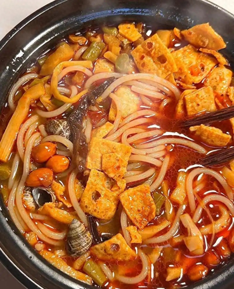 来到广西,首先不能错过的就是柳州螺蛳粉。它那独特的风味,可谓是“臭”名远扬却又让人欲罢不能。以螺蛳熬制的汤底浓郁鲜香,搭配上酸爽的酸笋、酥脆的腐竹、软糯的花生等配菜,再加上柔韧劲道的米粉,每一口都是味觉的盛宴。那酸笋独特的发酵气味,与螺蛳汤的鲜辣完美融合,吃完整个人酣畅淋漓,仿佛所有的烦恼都随着那股辣味烟消云散。